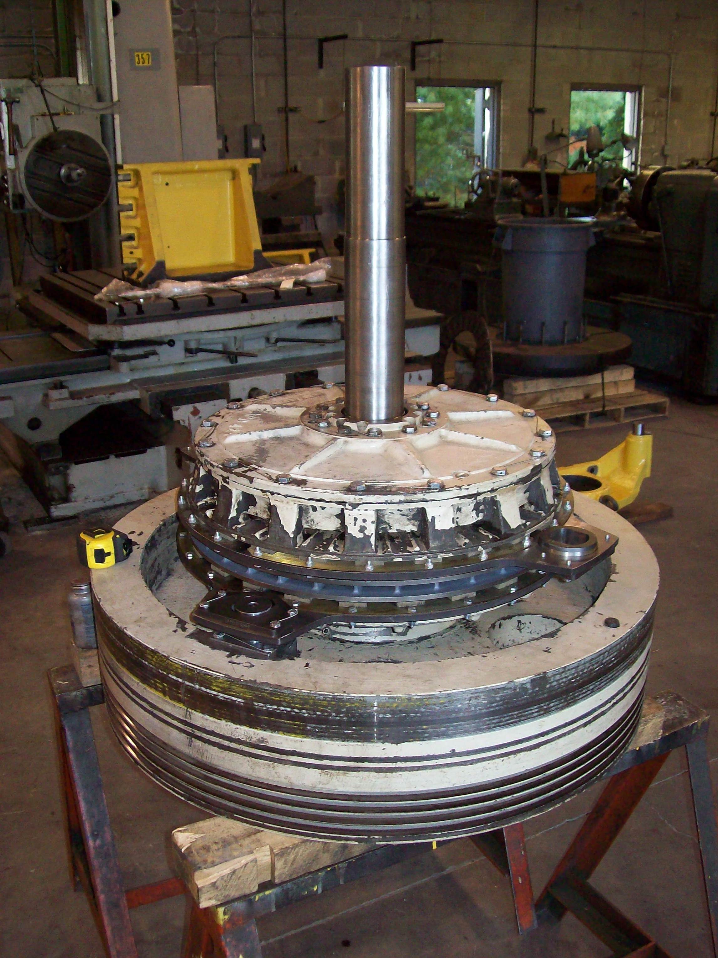 All parts are cleaned and then inspected Flywheel on the boring mill for machining Bliss "CAC" air clutch/brake unit was rebuilt